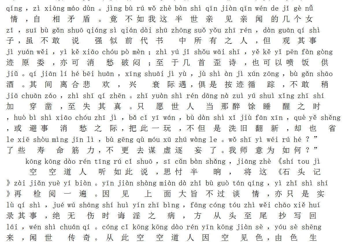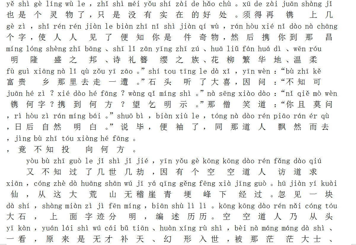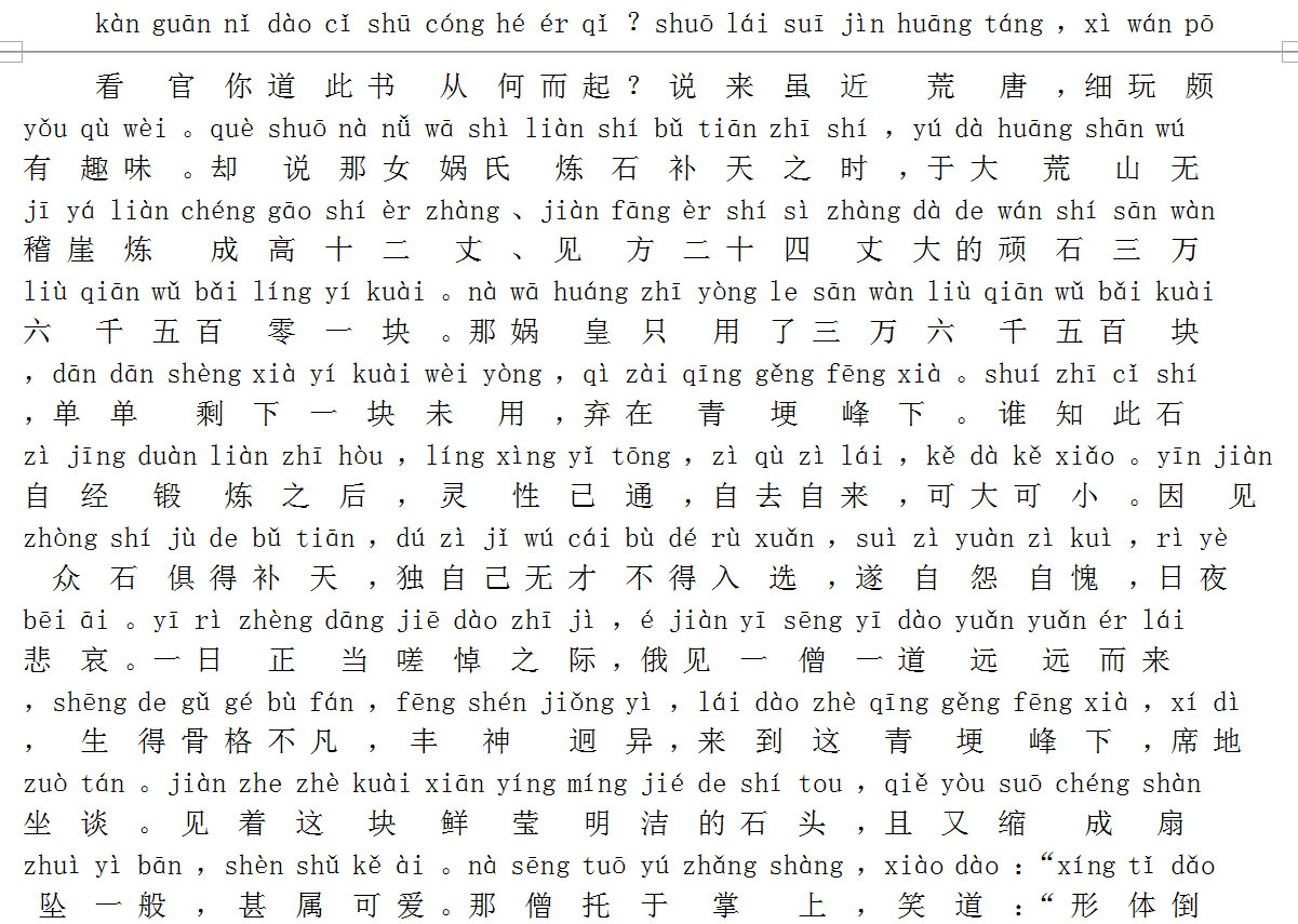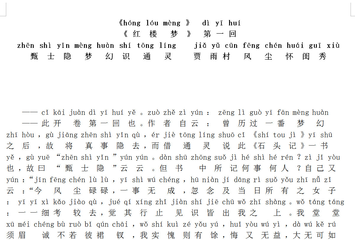 こちらの資料は中国語の勉強資料として、中国語の発音記号を付けたピンイン表記版であり、全編に渡って発音記号-ピンインを表記している。